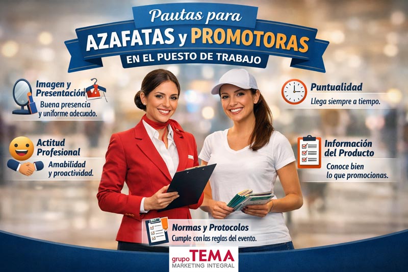 Las pautas para azafatas y promotoras en el puesto de trabajo son un elemento esencial para el éxito de cualquier acción promocional. Imagen, actitud, formación y compromiso se combinan para ofrecer una experiencia positiva al consumidor y reforzar el posicionamiento de la marca.